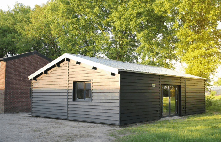 Het stijlvolle zadeldak geeft het chalet een moderne uitstraling en biedt bovendien mogelijkheden voor duurzame toepassingen, zoals het plaatsen van zonnepanelen of een groen dak. Zonnepanelen kunnen tegen een meerprijs worden meegeleverd.